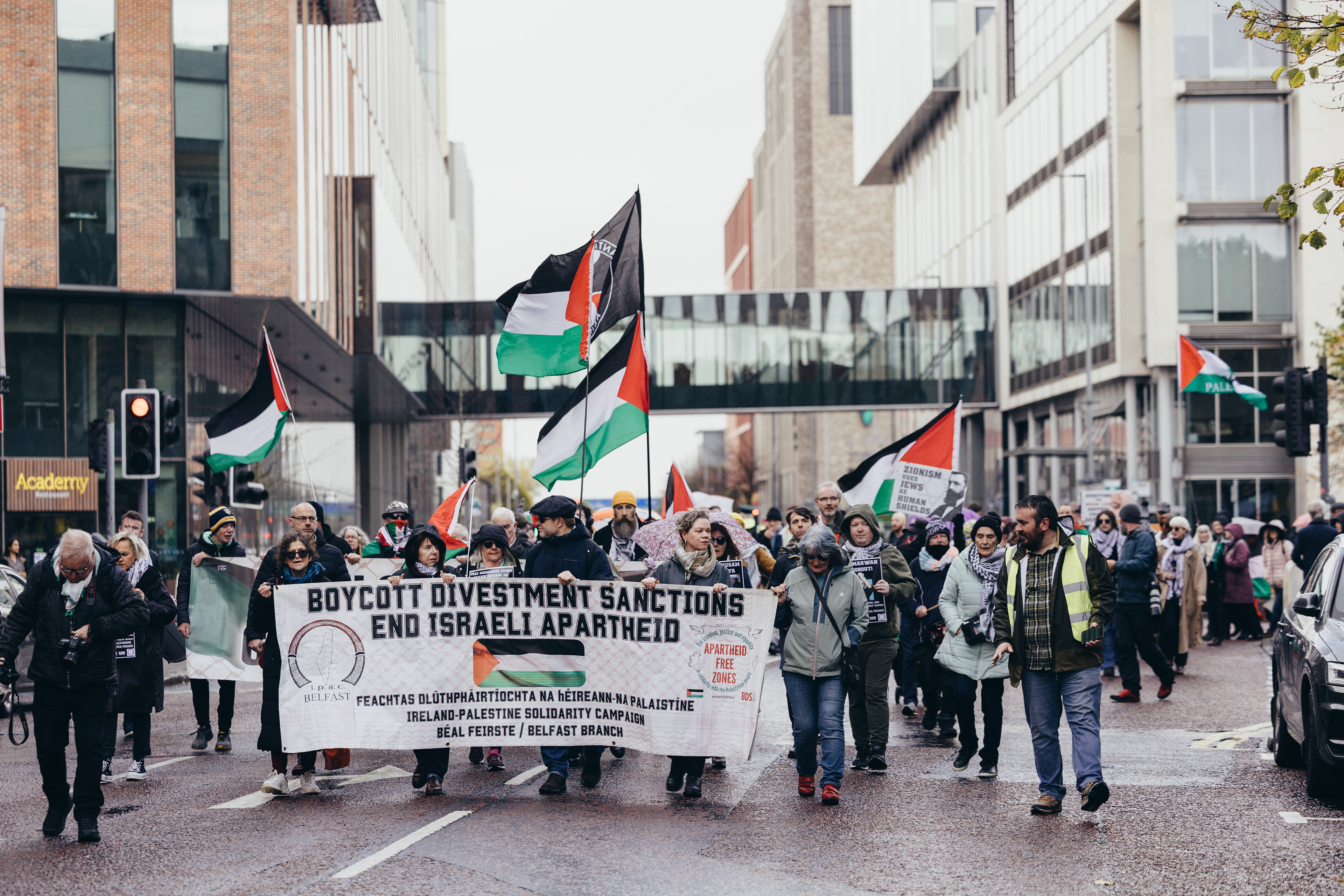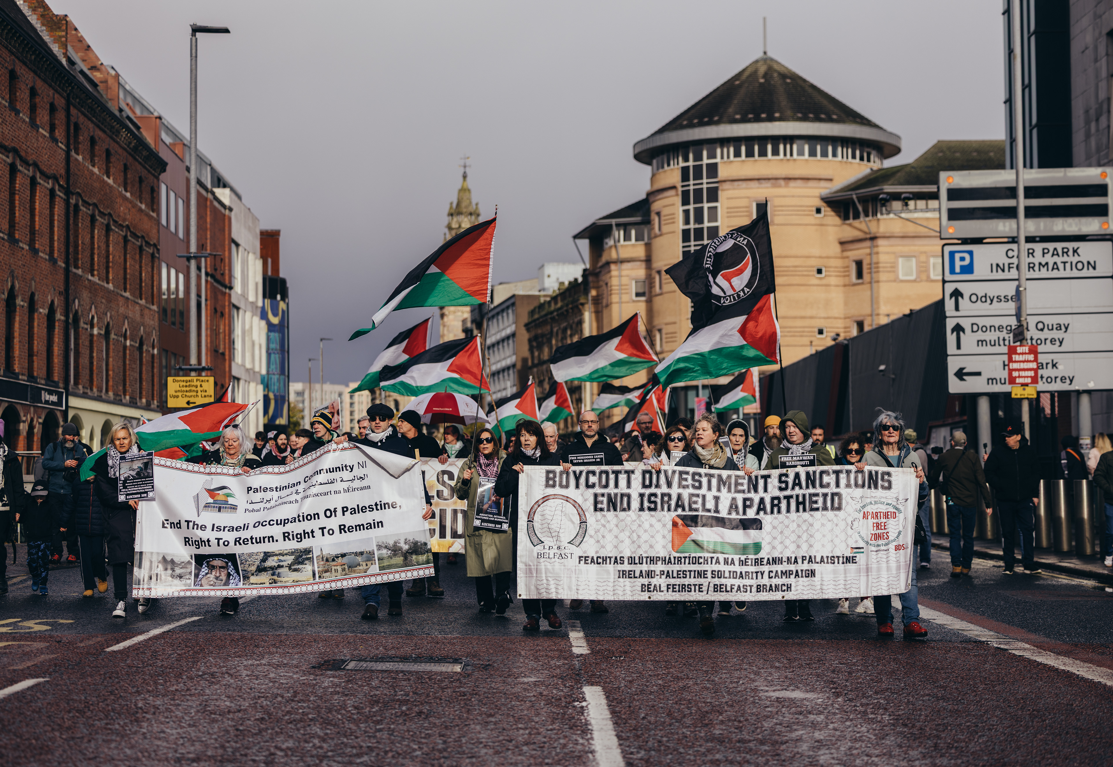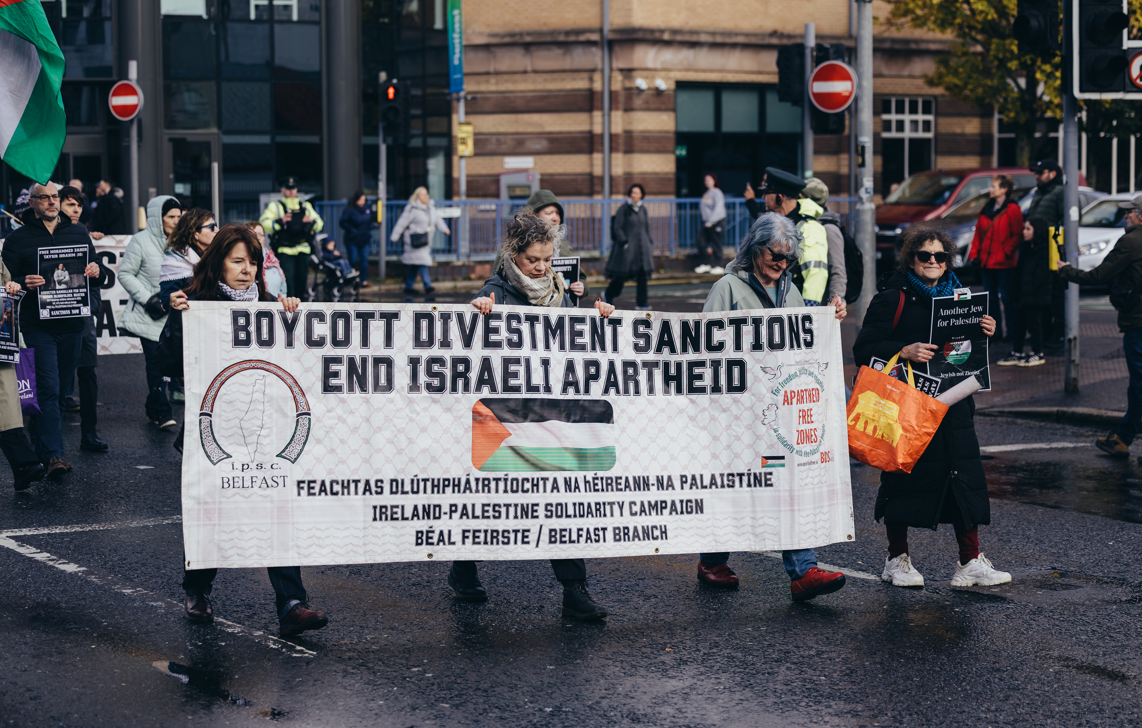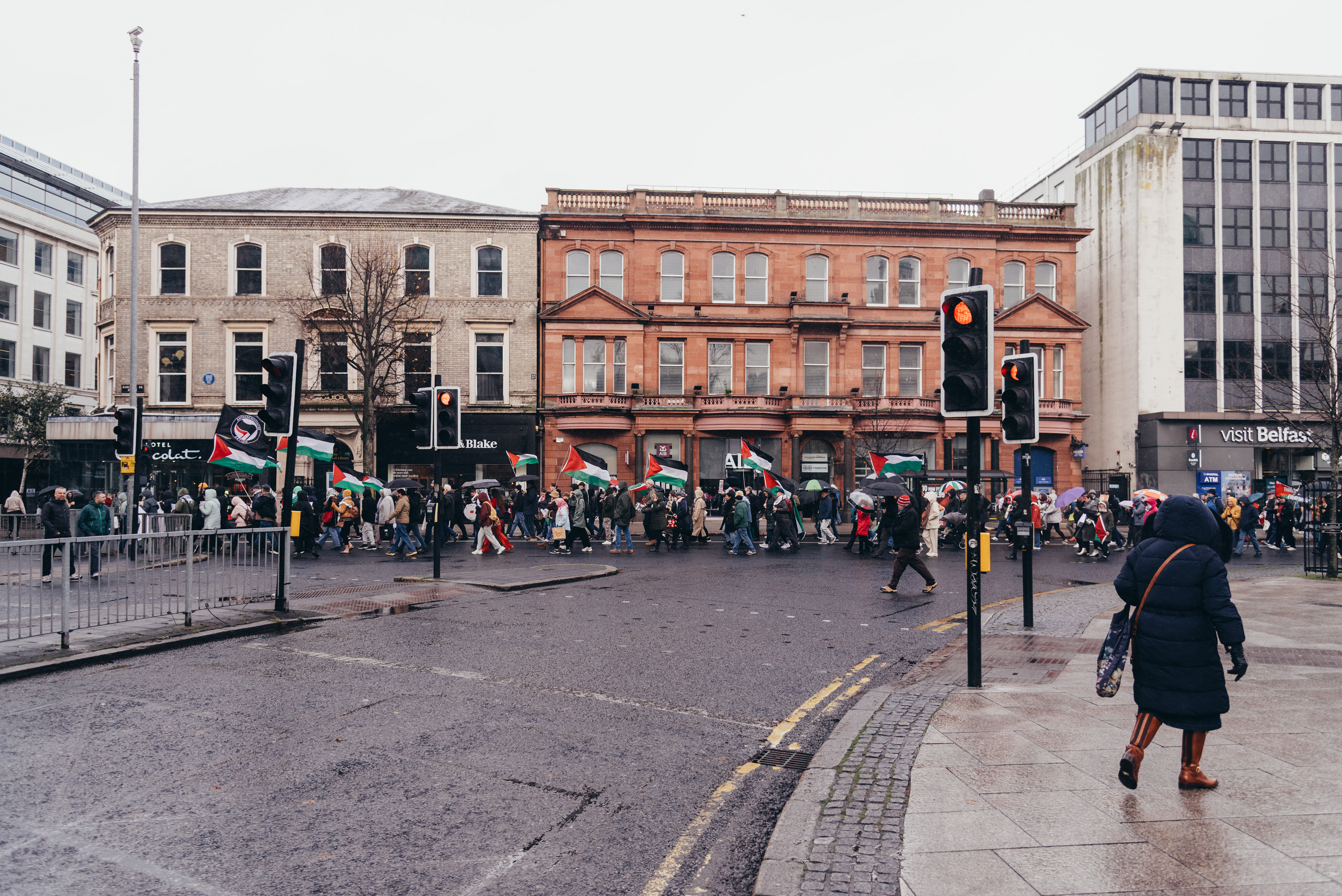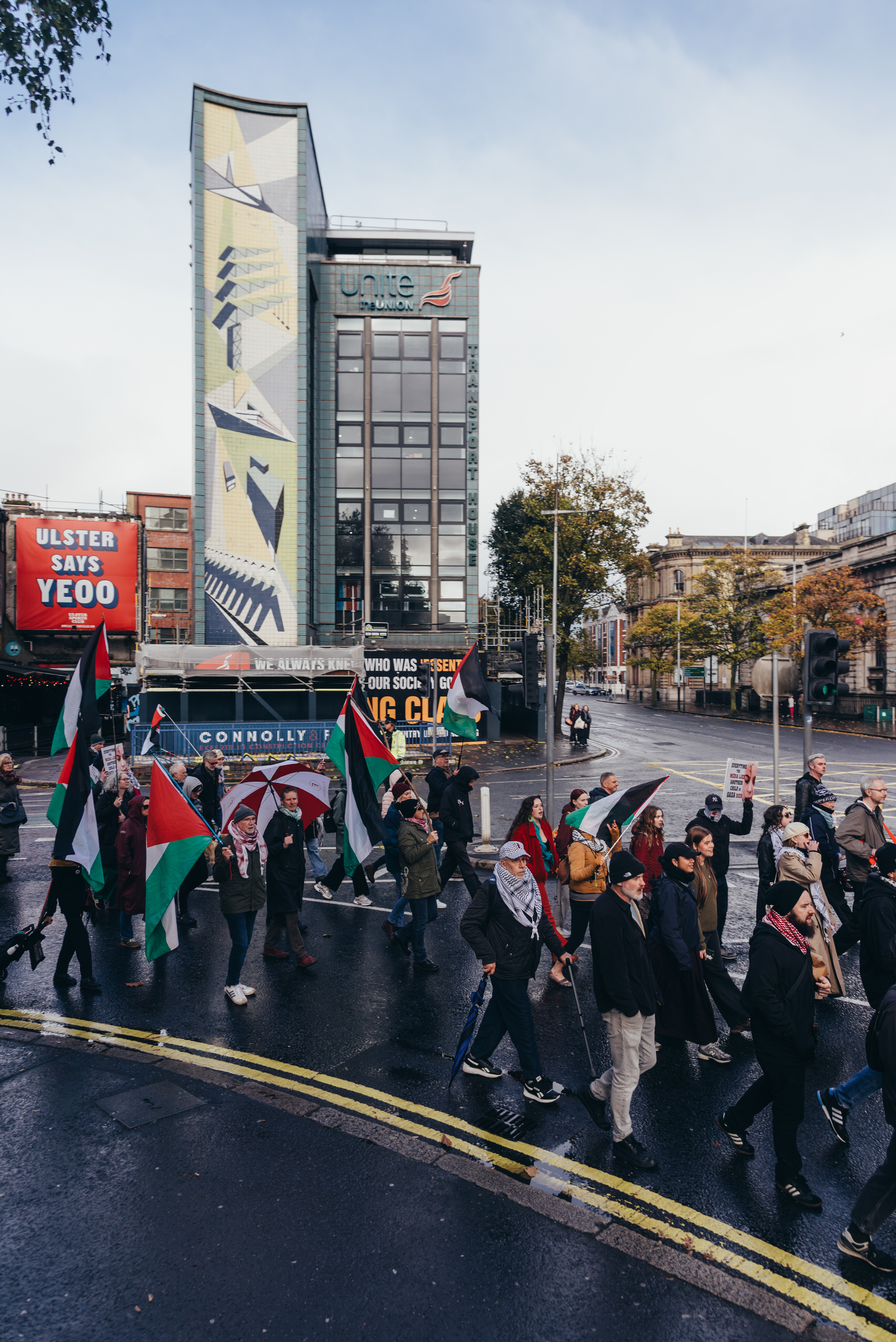 25 October 2025 - A march to the BBC Blackstaff to protest the genocide in Gaza. The march was harried along the entire route by far right vloggers who the PSNI seemingly decided to just not bother policing.