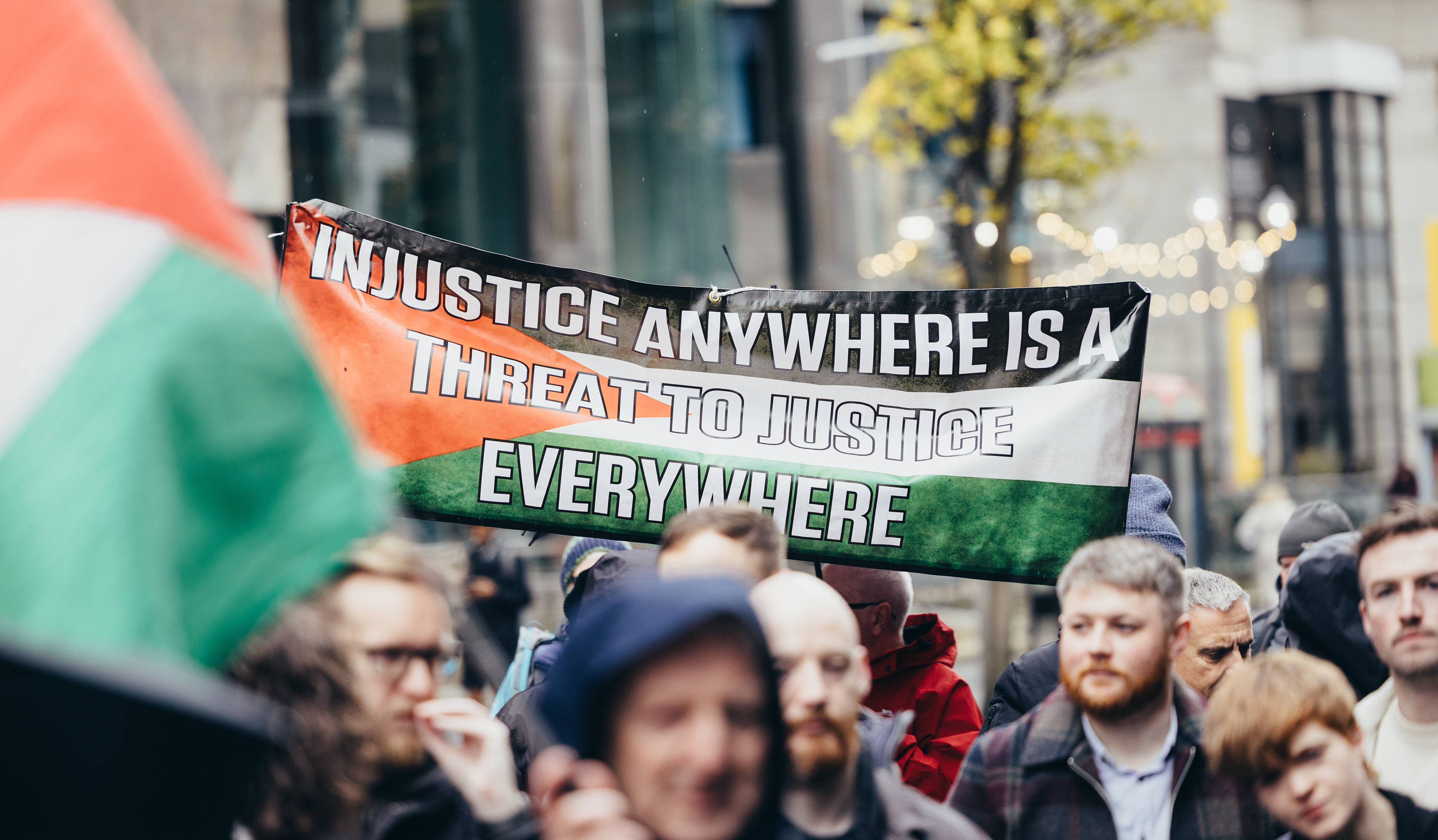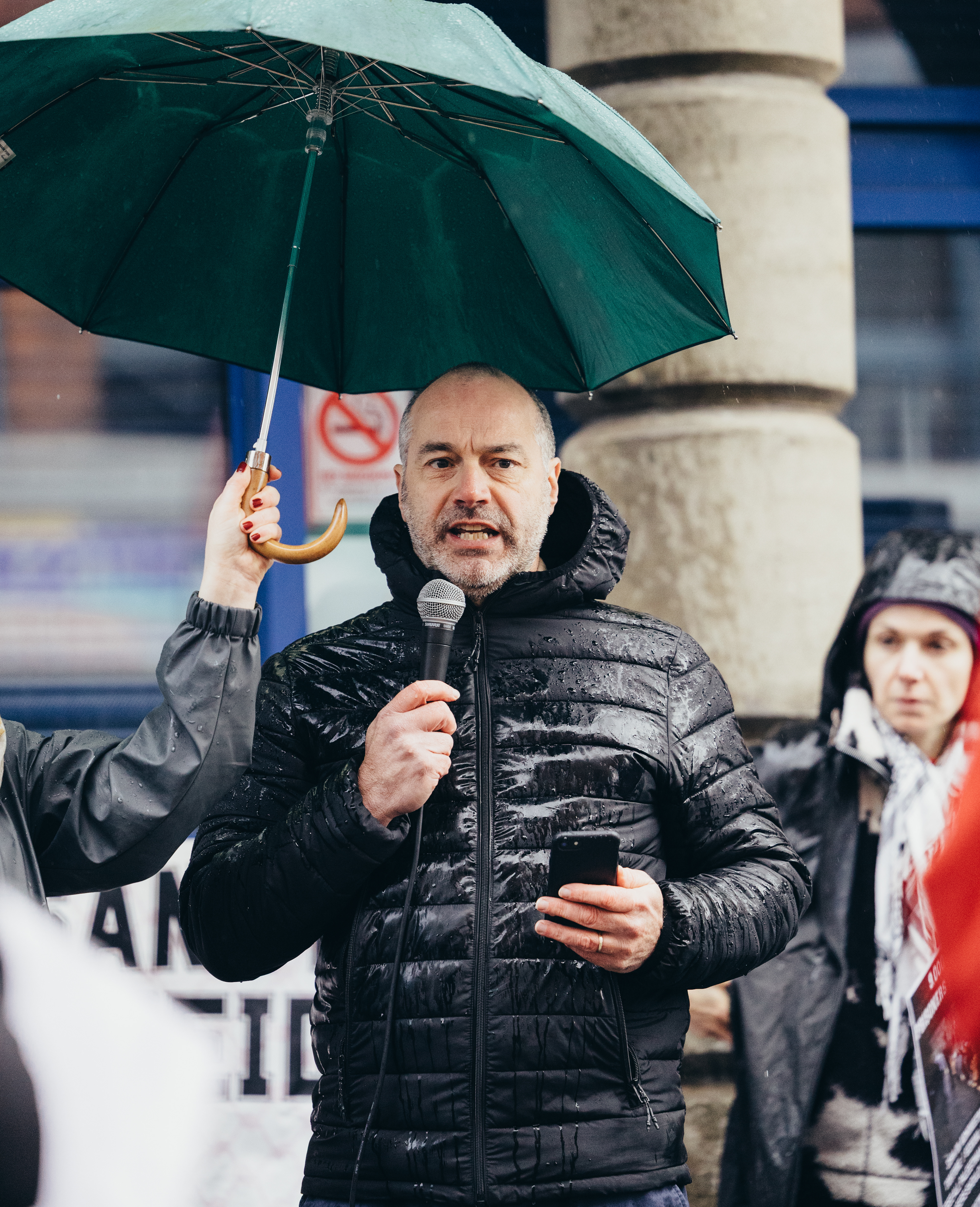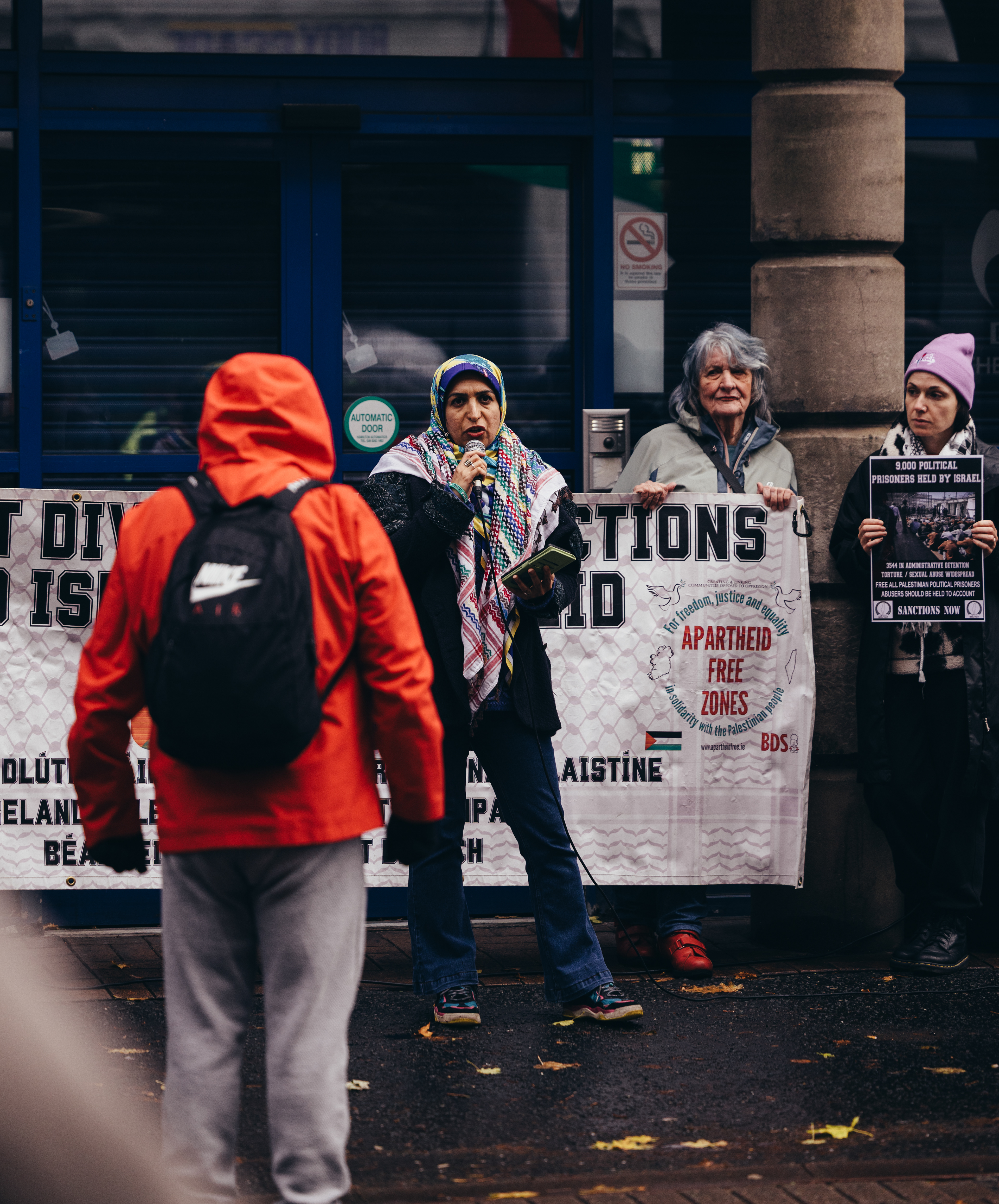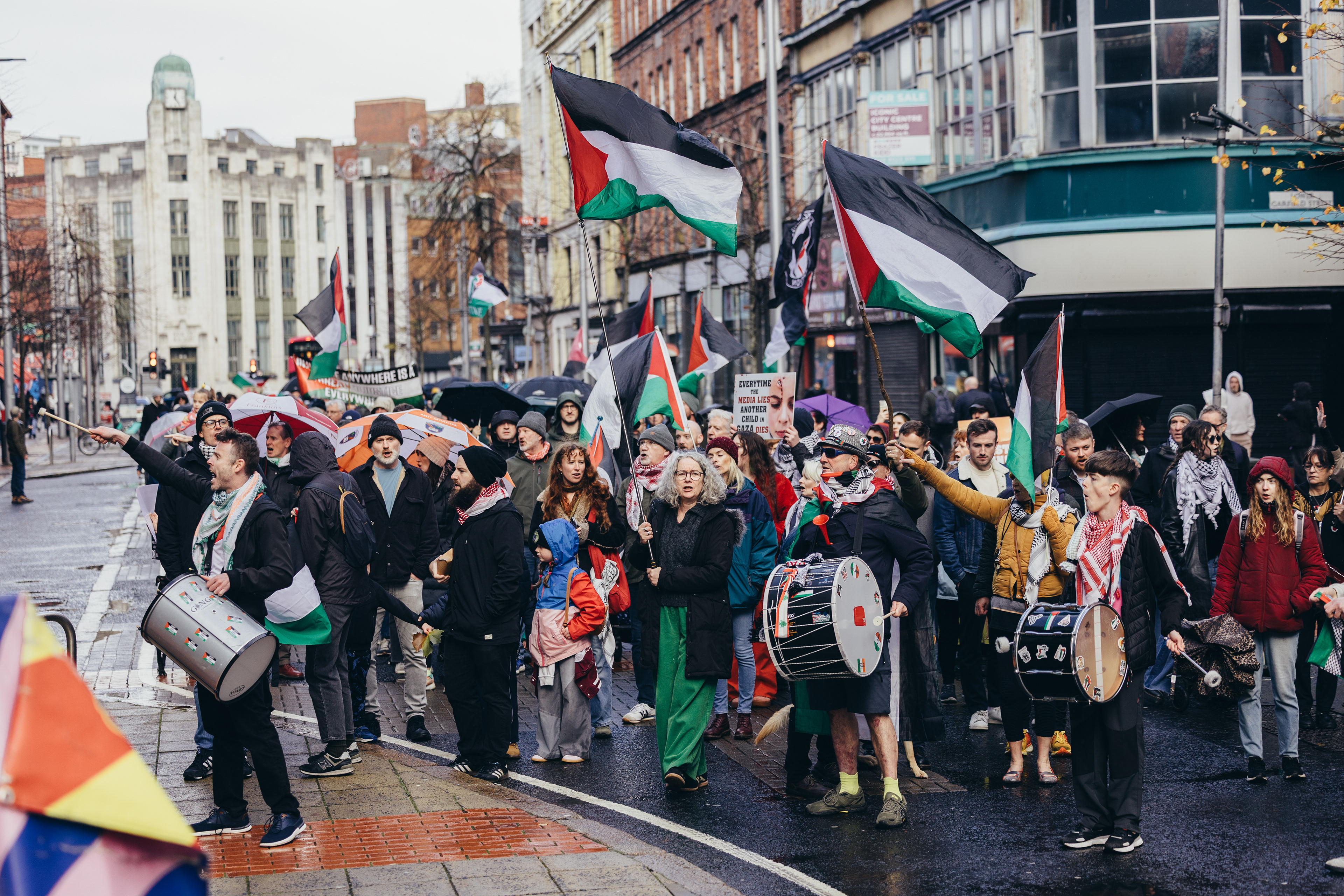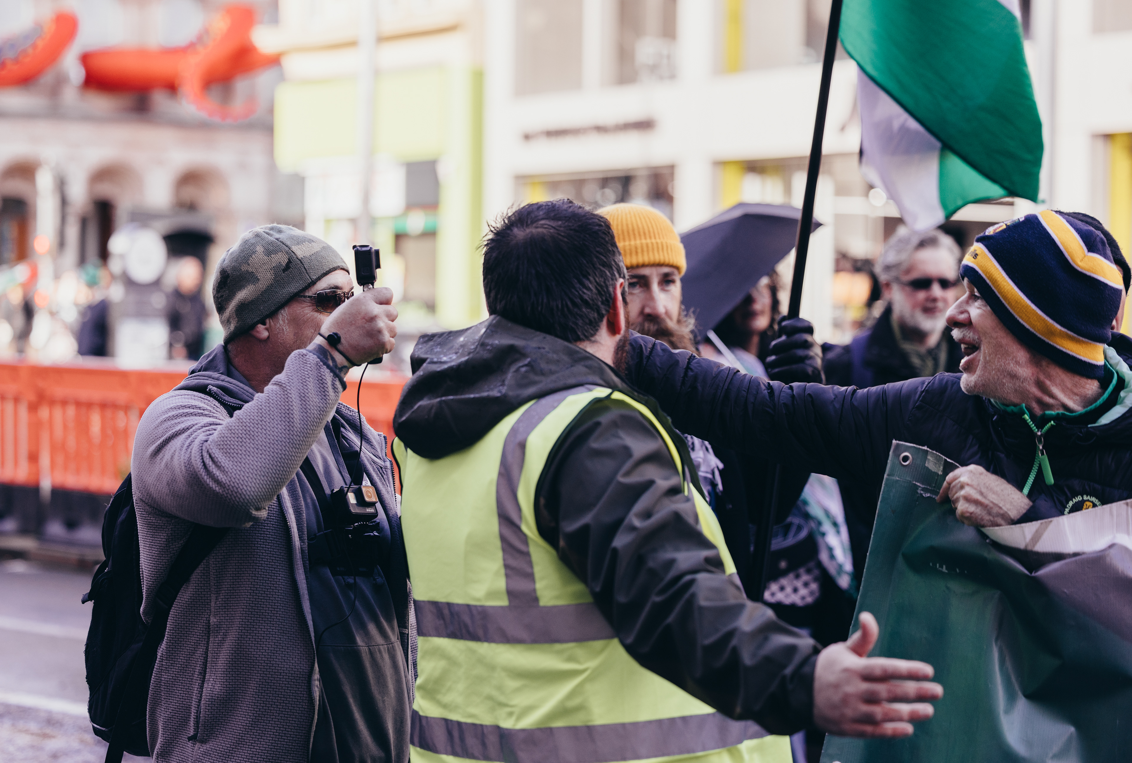 25 October 2025 - A march to the BBC Blackstaff to protest the genocide in Gaza. The march was harried along the entire route by far right vloggers who the PSNI seemingly decided to just not bother policing.
