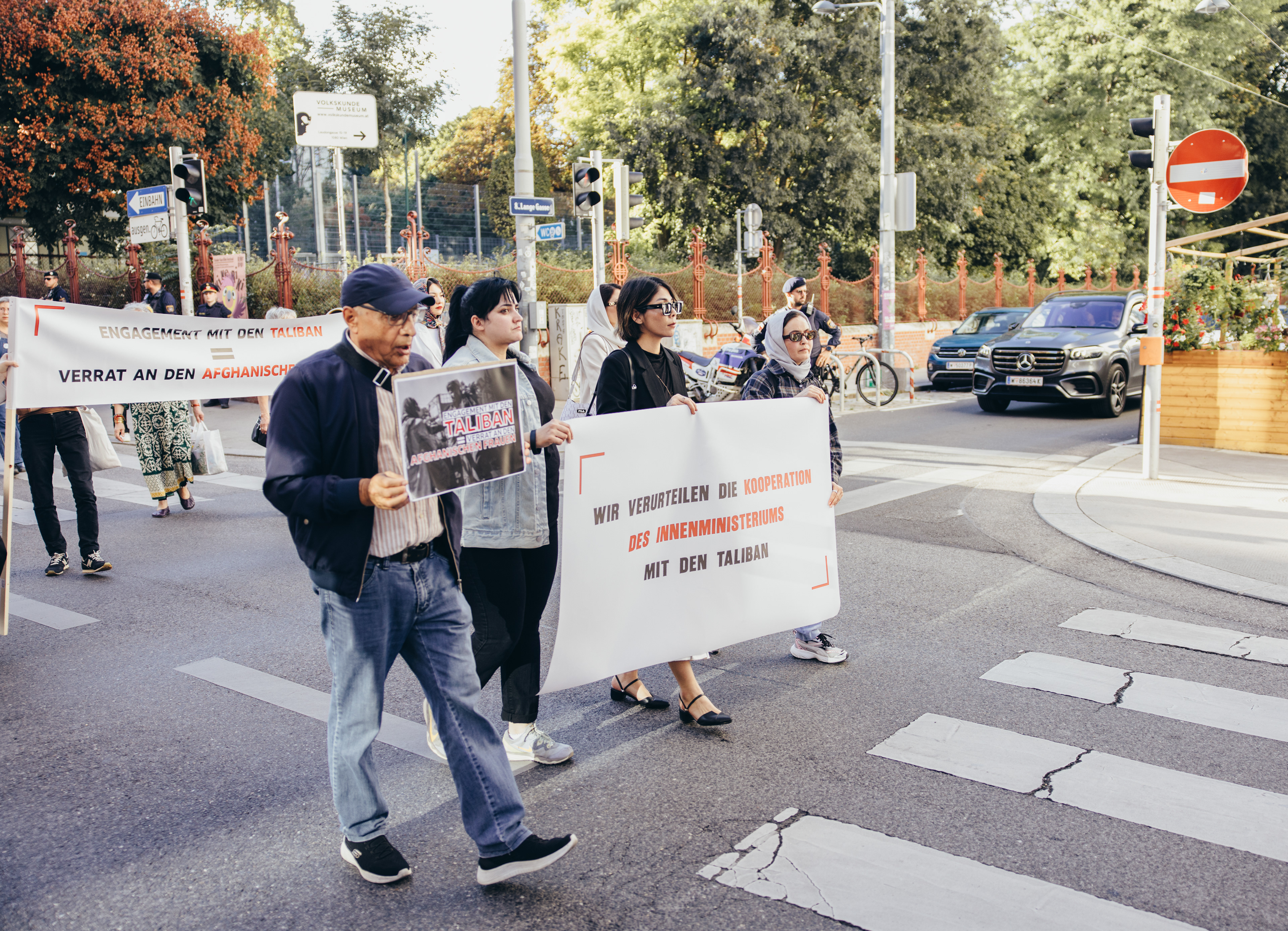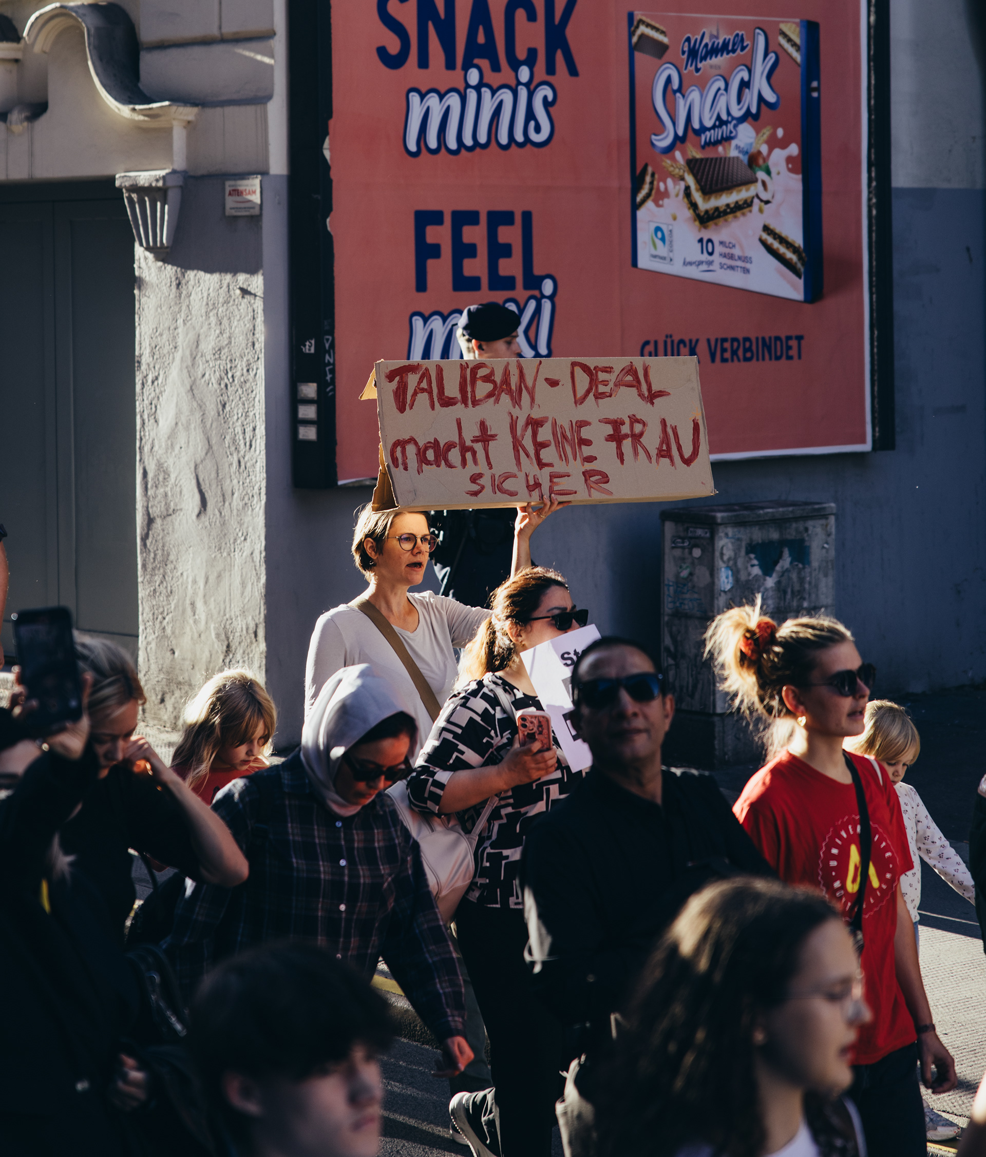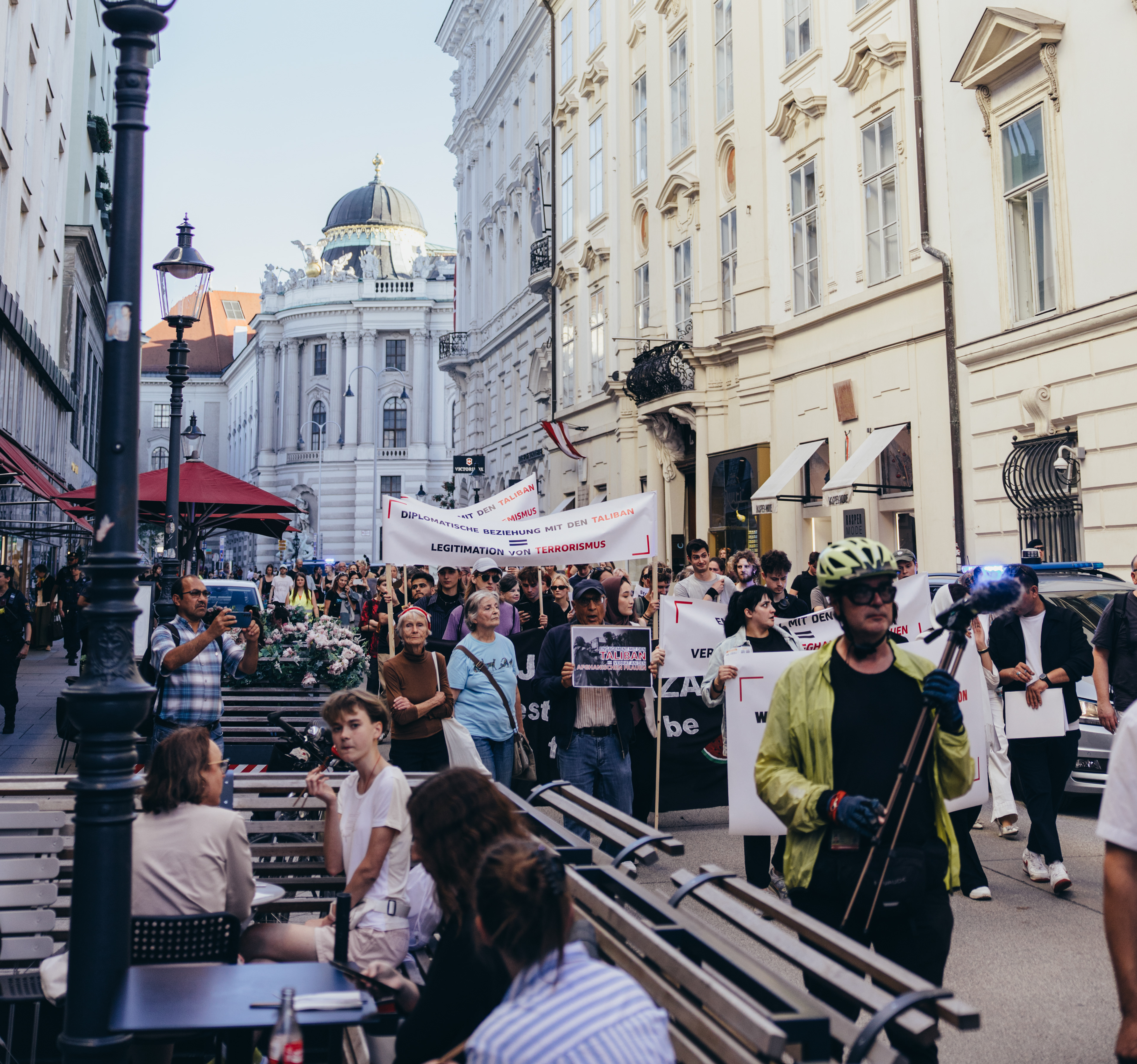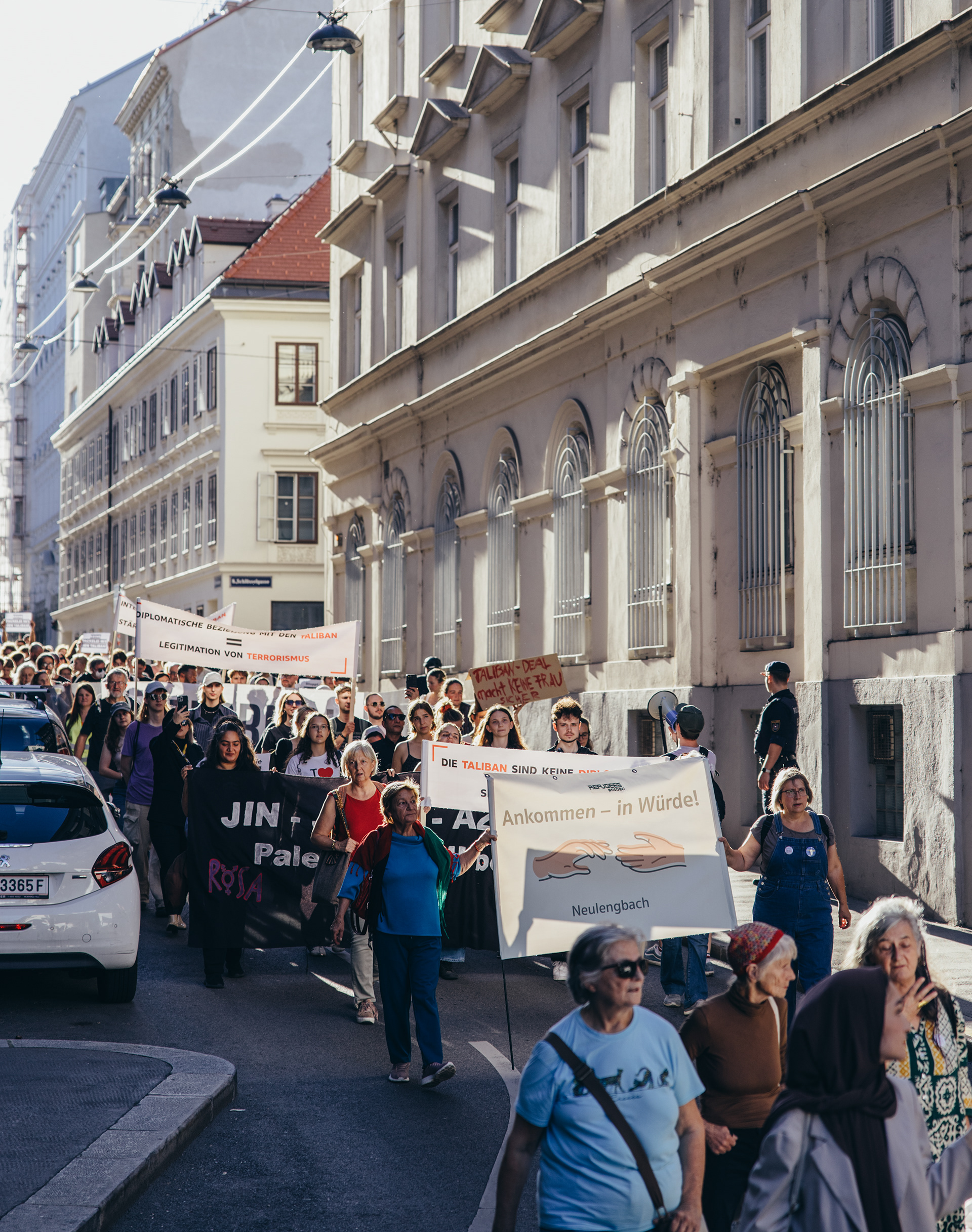 15 September 2025 - Just because I'm on holiday doesn't necessarily mean the protest photos stop. I heard this march passing a few streets away from my hotel room and immediately went out to chase it down. The march was against the recent opening of negotations between a delegation of Taliban representatives and the Austrian Interior Ministry which seeks to create a process for deporting people to Afghanistan with the assistance of the Taliban government.