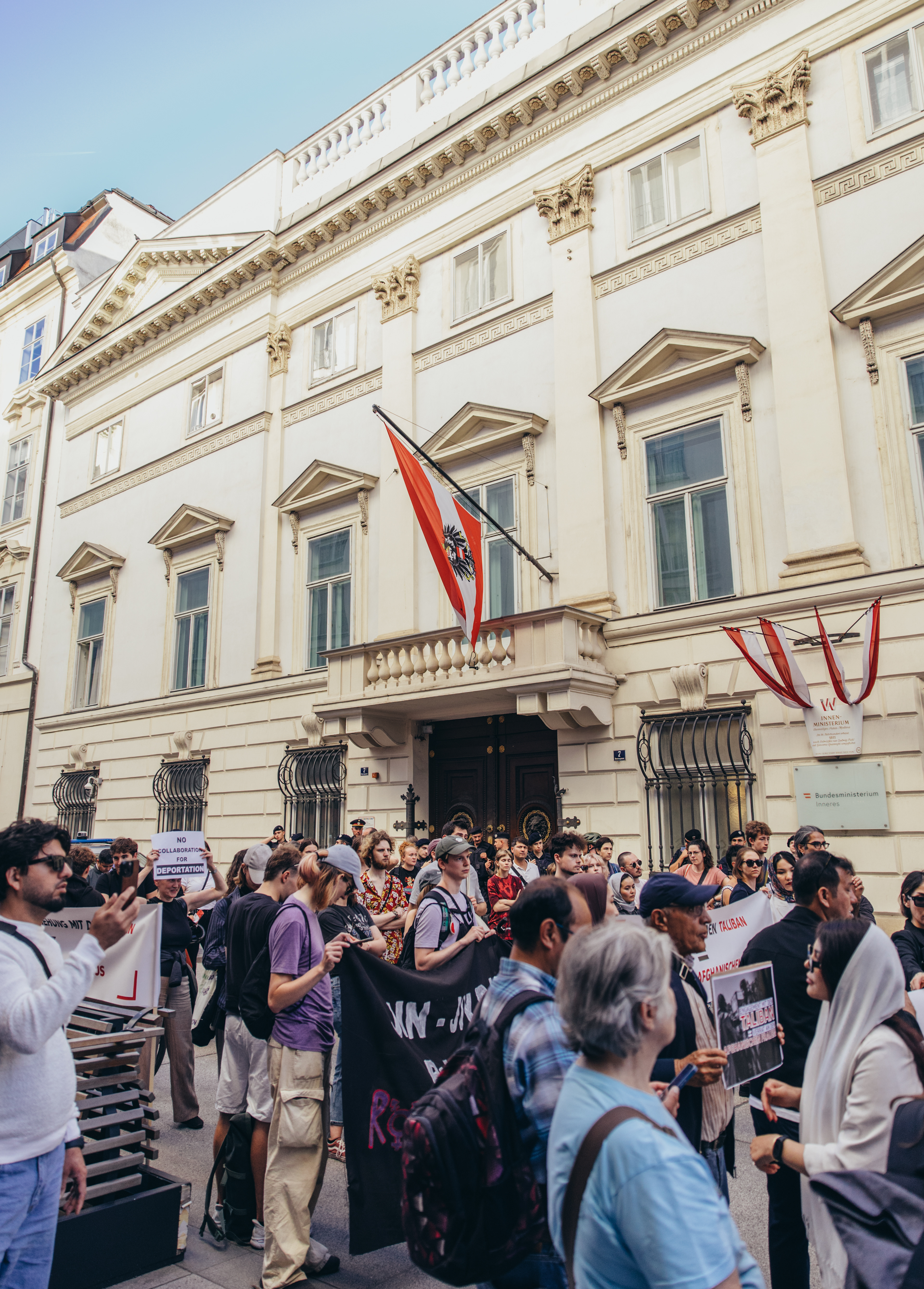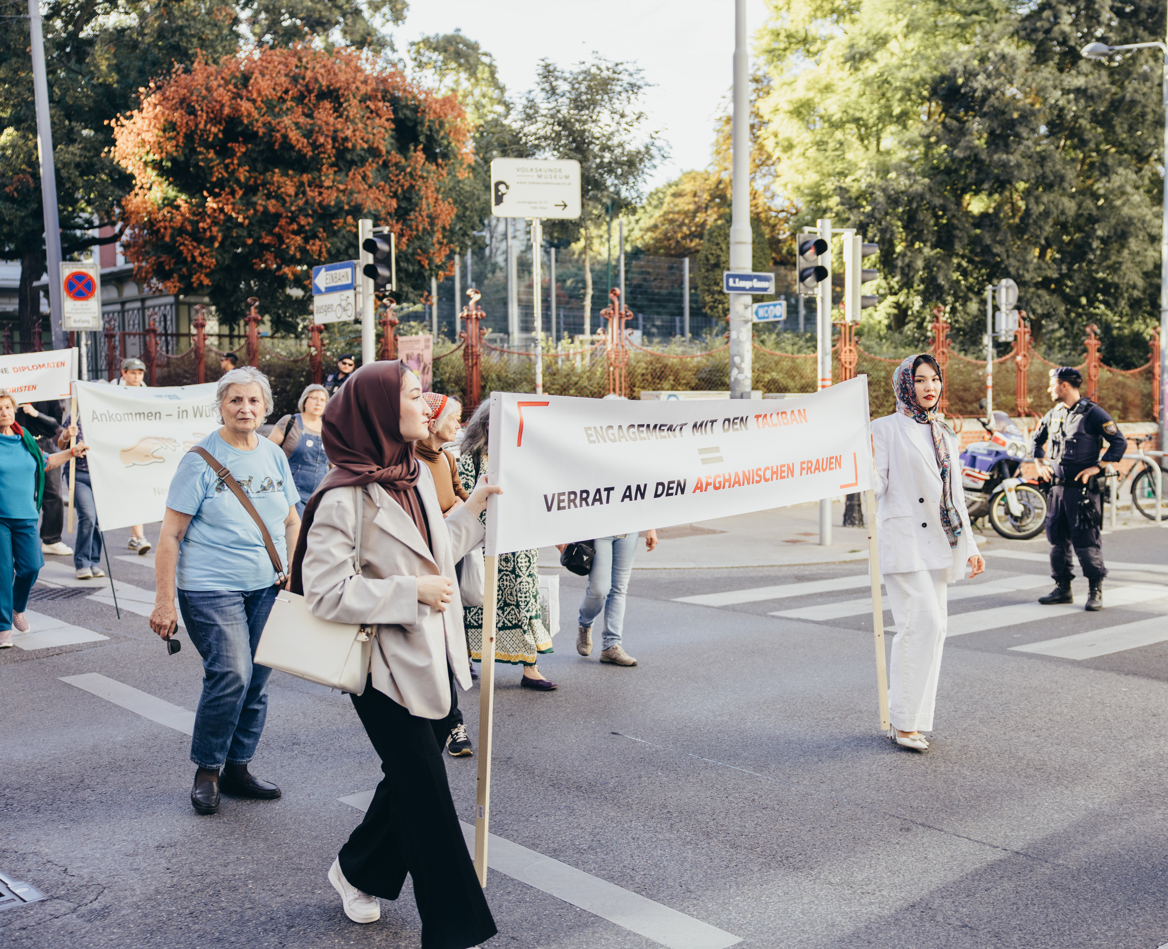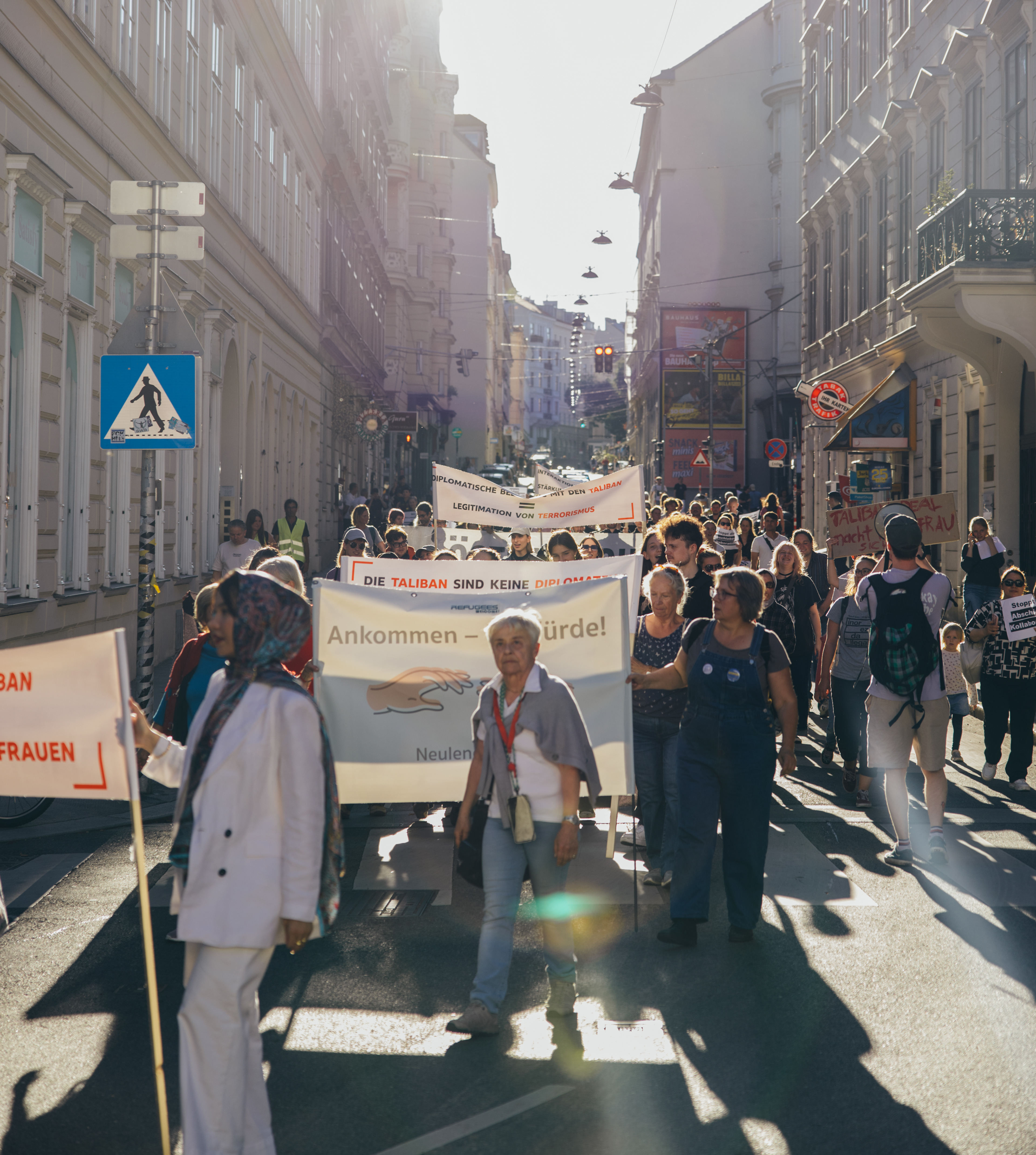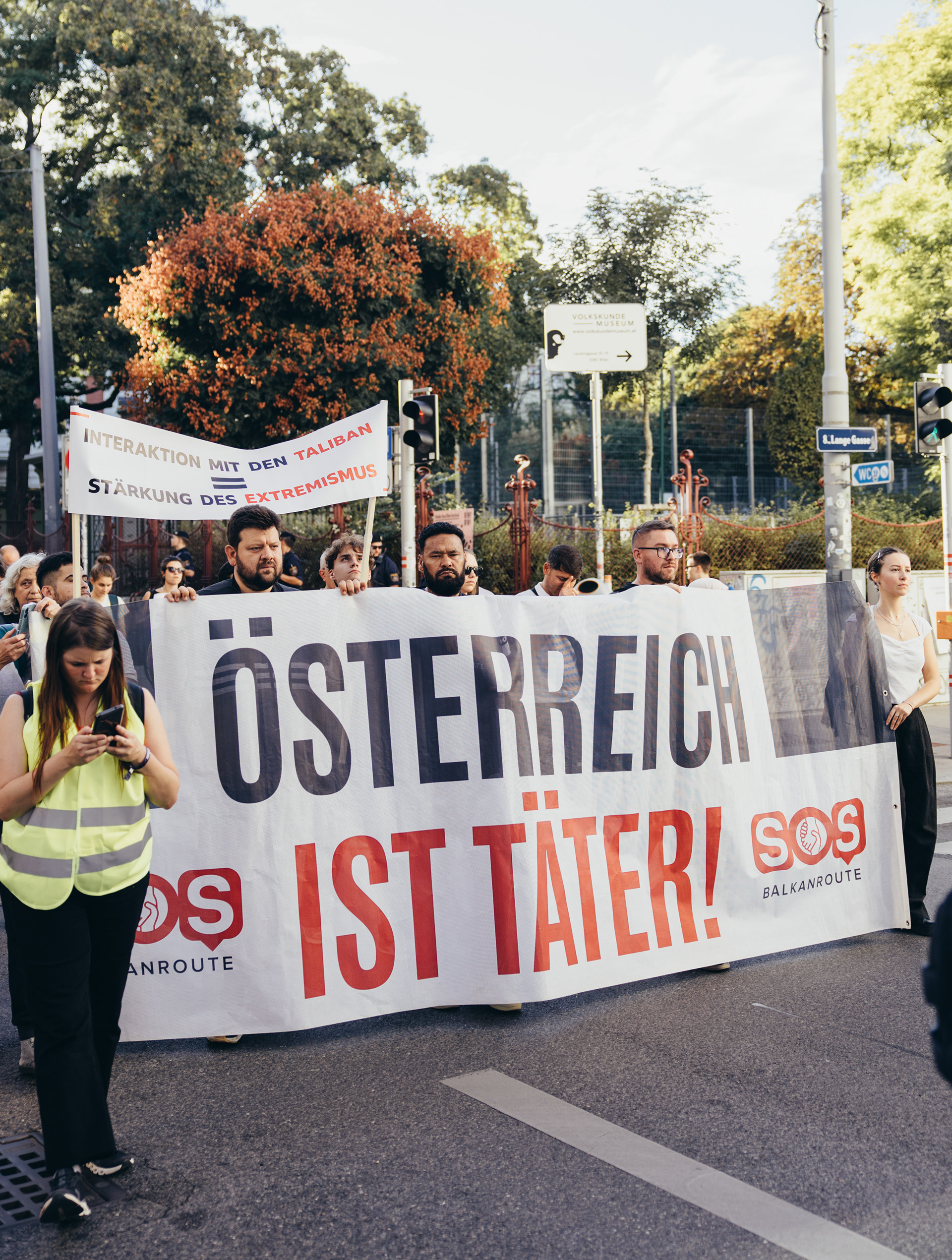 15 September 2025 - Just because I'm on holiday doesn't necessarily mean the protest photos stop. I heard this march passing a few streets away from my hotel room and immediately went out to chase it down. The march was against the recent opening of negotations between a delegation of Taliban representatives and the Austrian Interior Ministry which seeks to create a process for deporting people to Afghanistan with the assistance of the Taliban government.