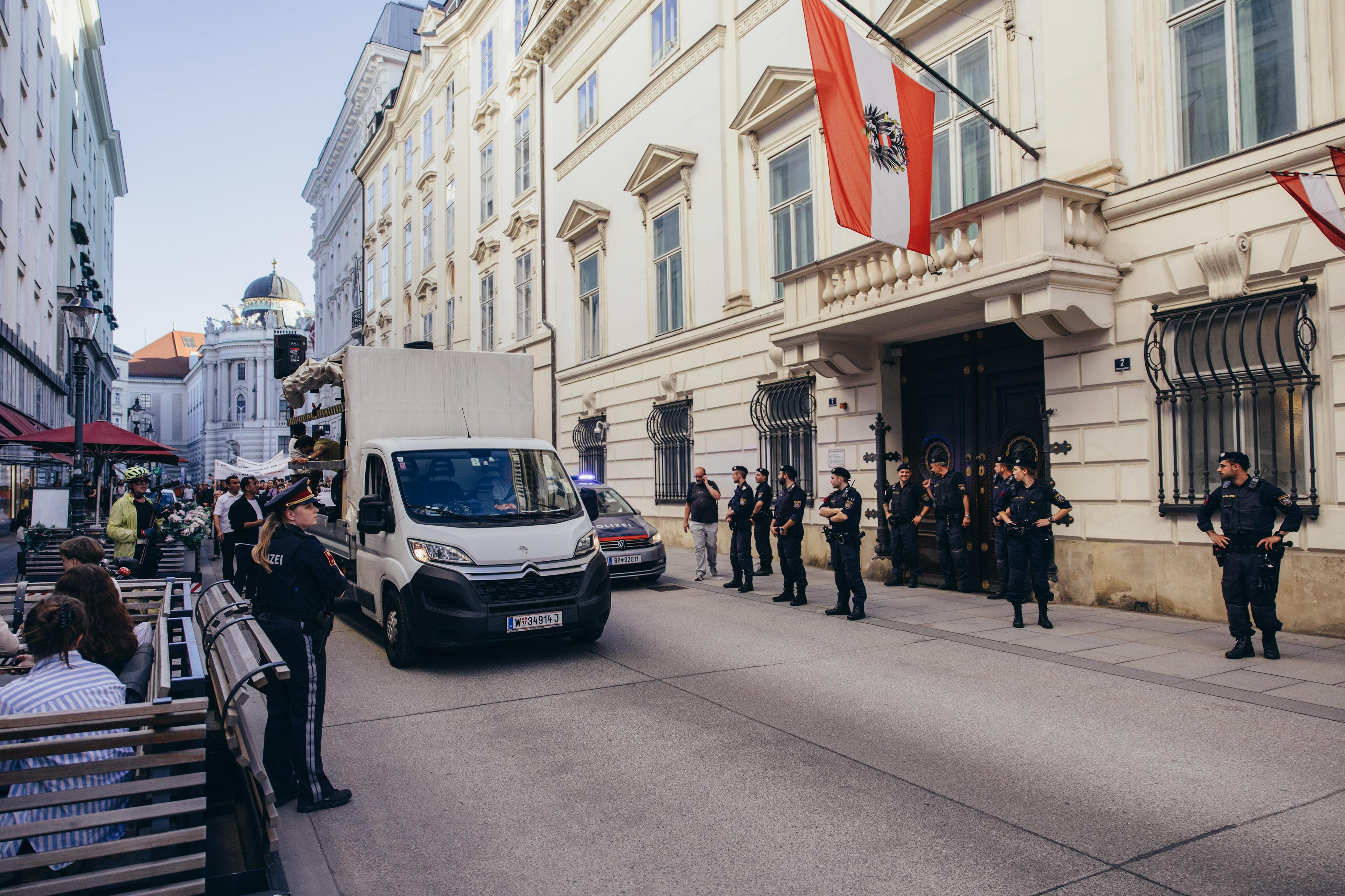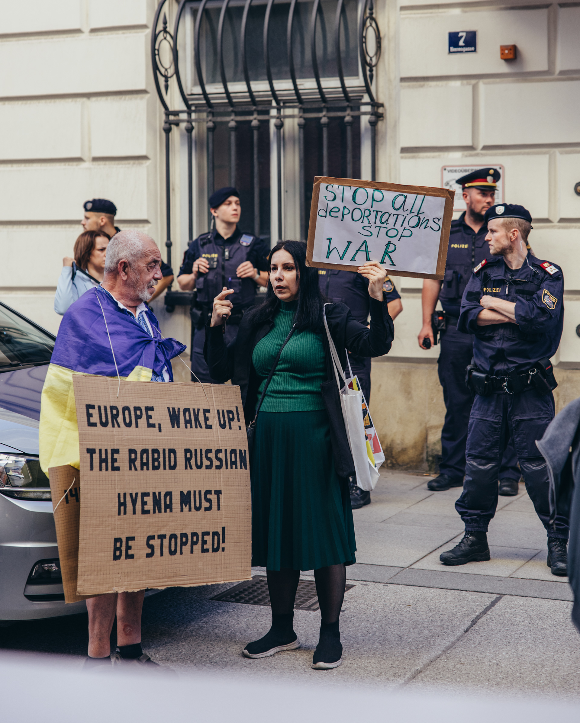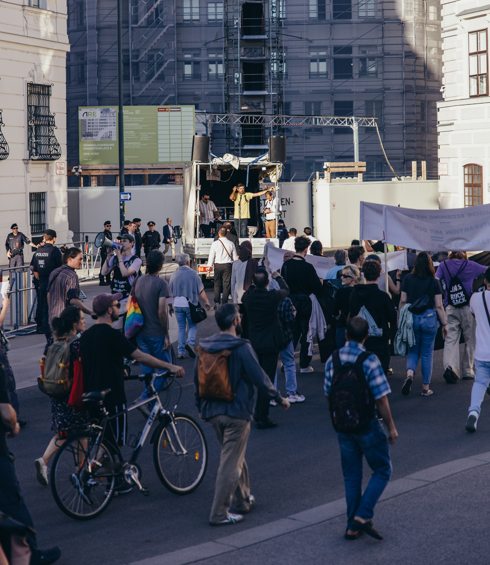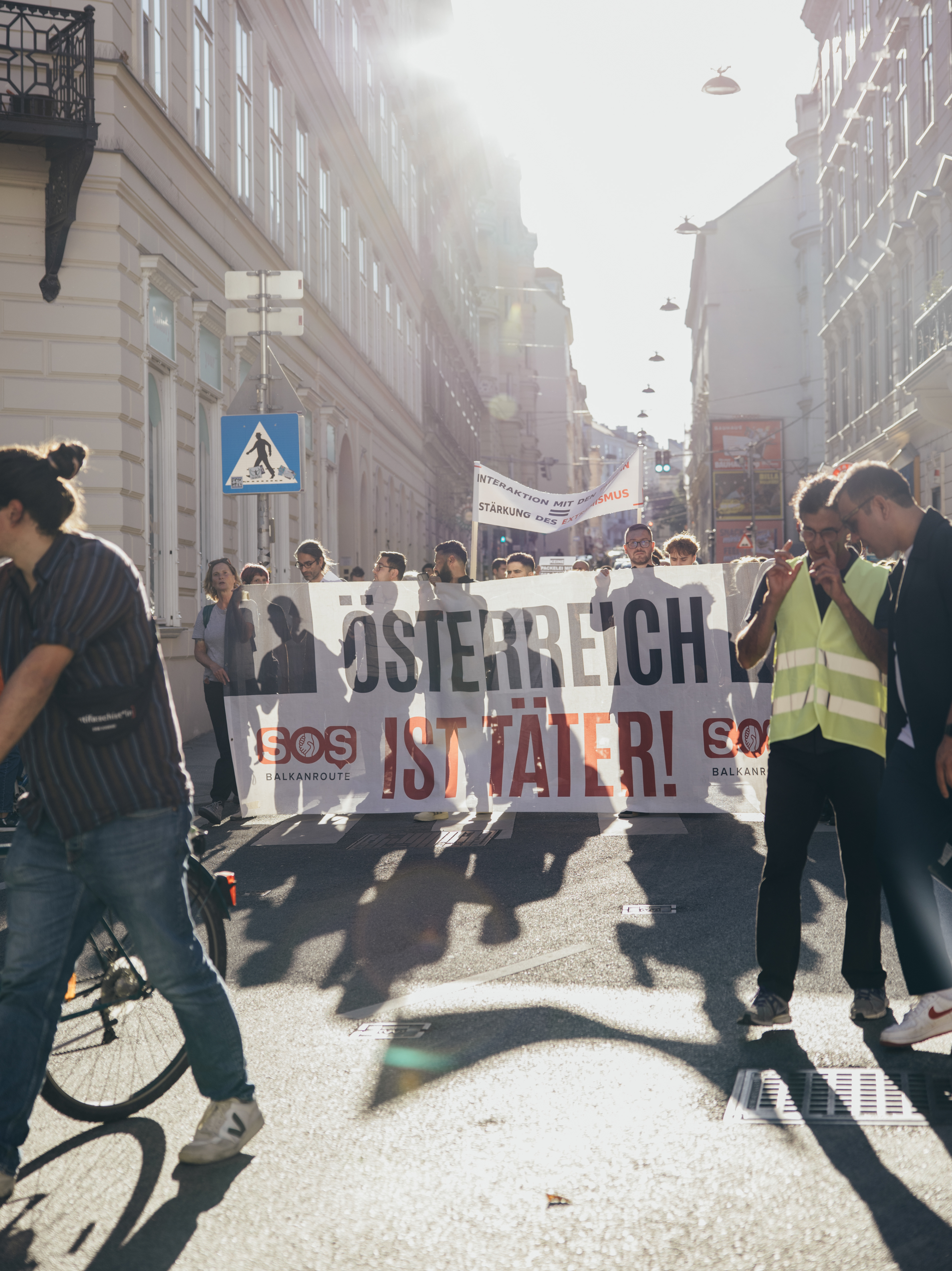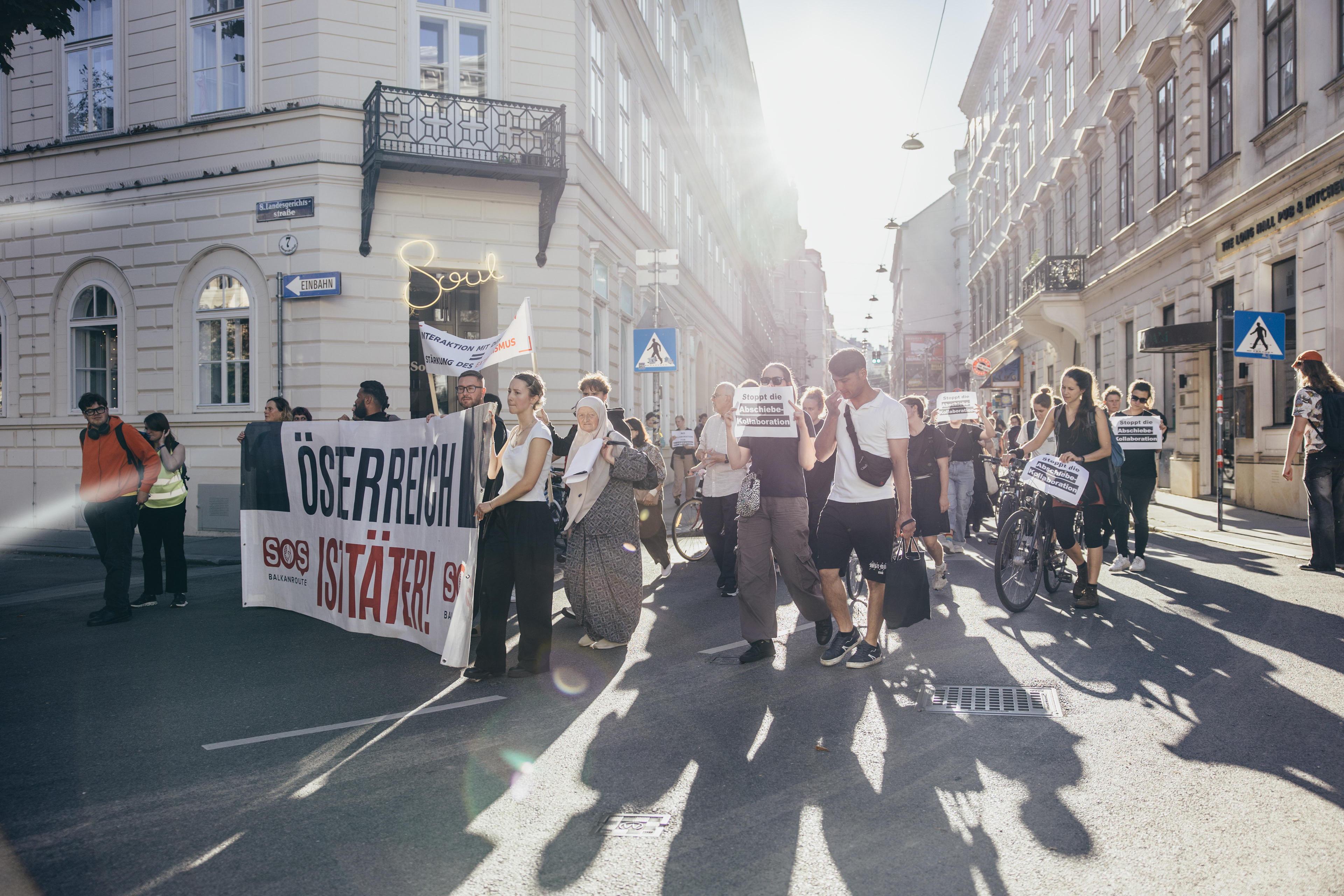 15 September 2025 - Just because I'm on holiday doesn't necessarily mean the protest photos stop. I heard this march passing a few streets away from my hotel room and immediately went out to chase it down. The march was against the recent opening of negotations between a delegation of Taliban representatives and the Austrian Interior Ministry which seeks to create a process for deporting people to Afghanistan with the assistance of the Taliban government.