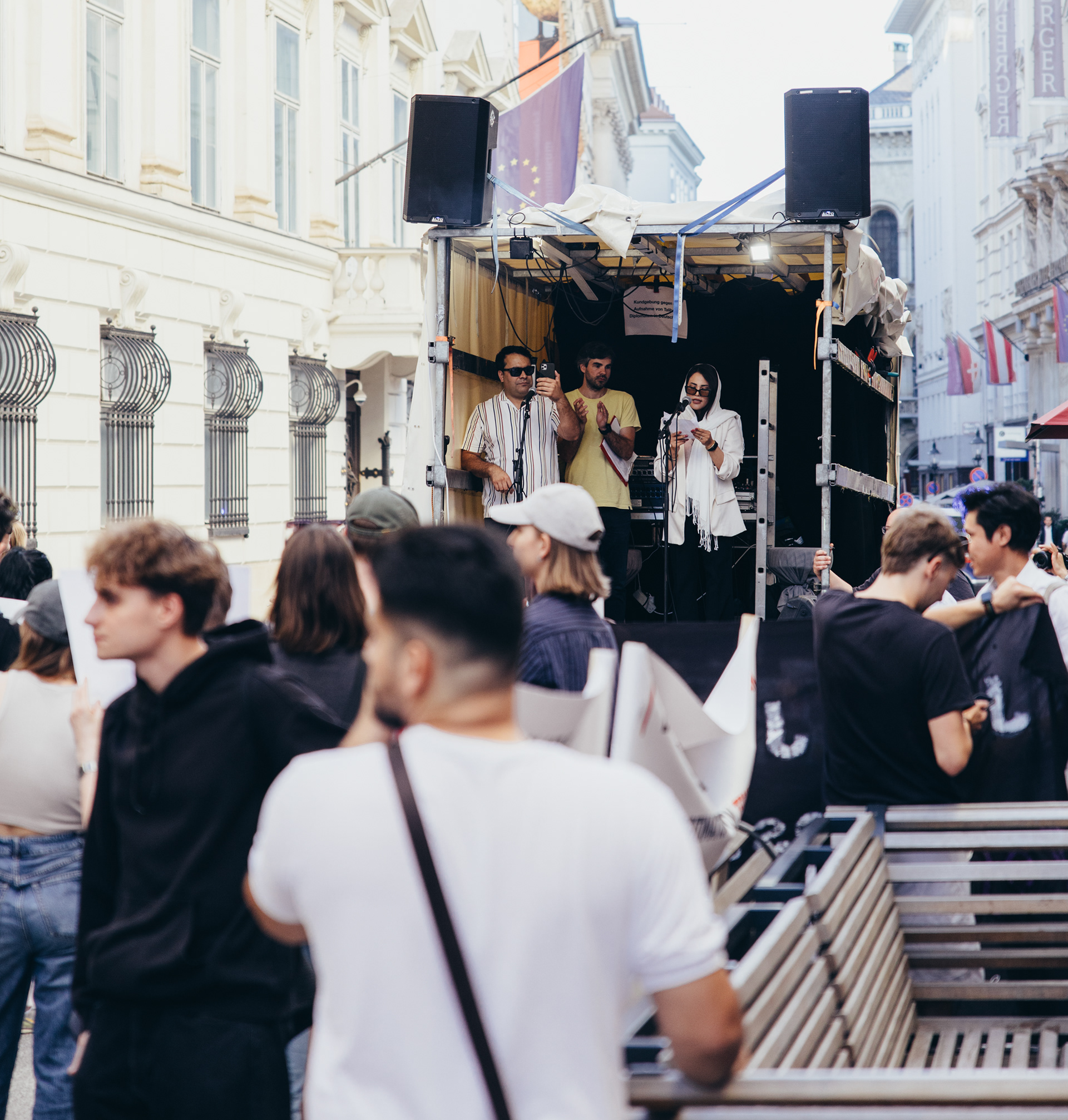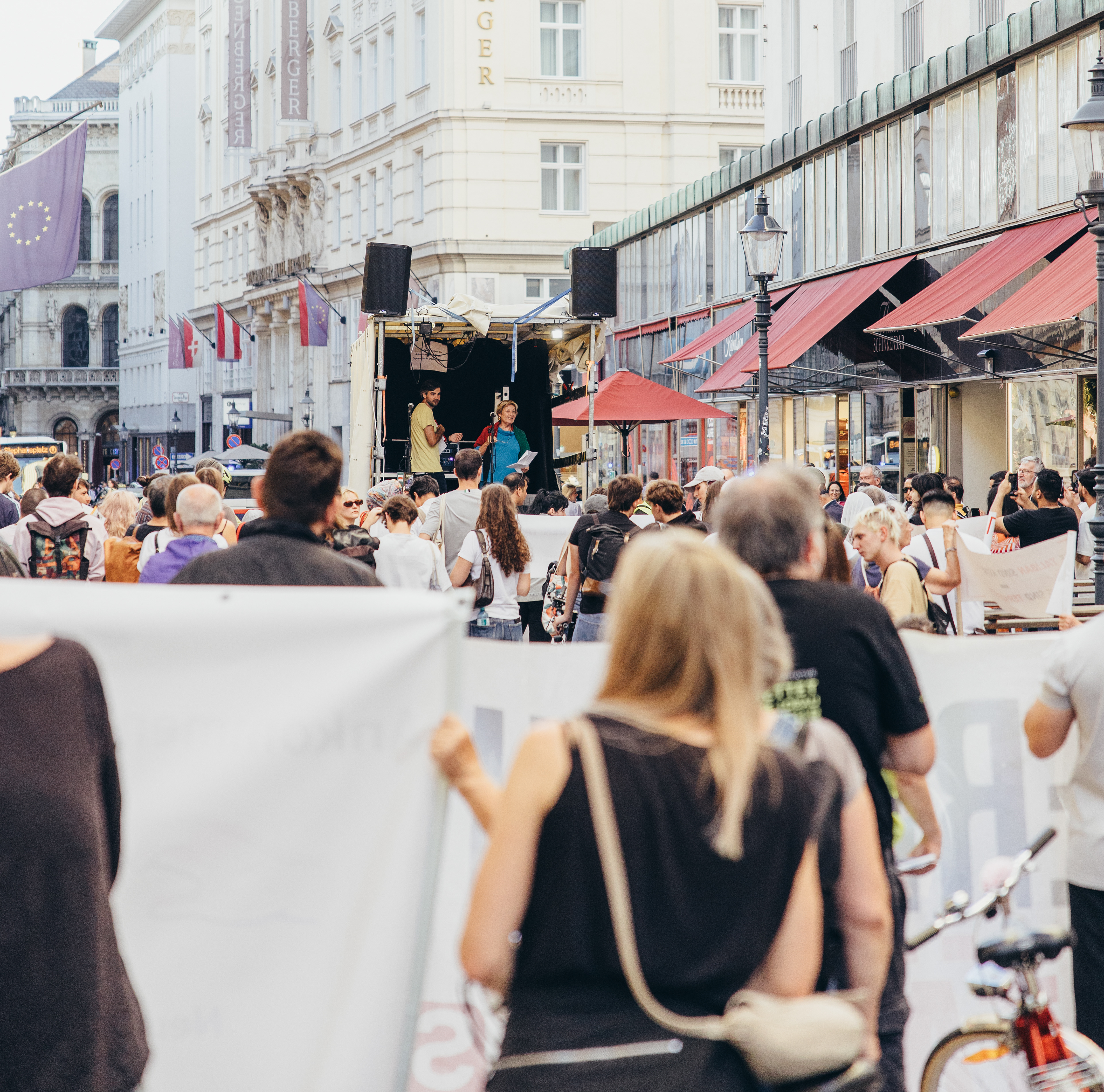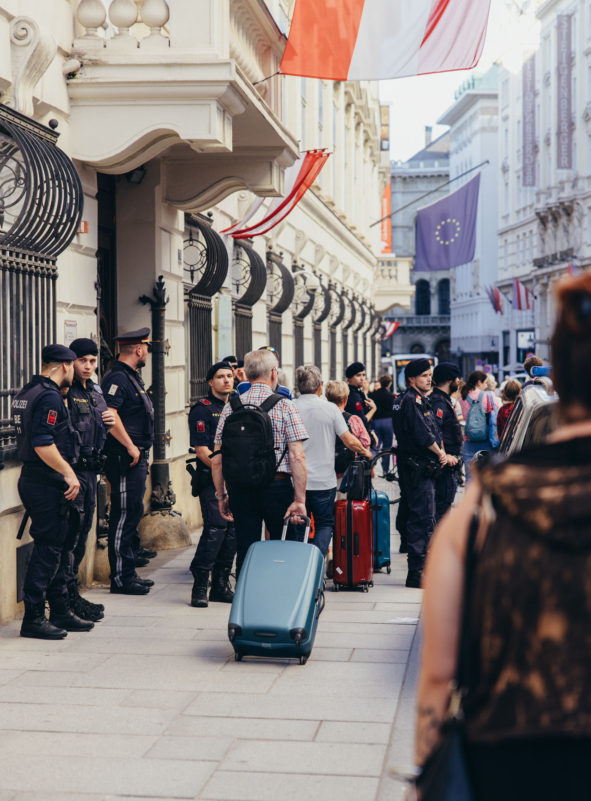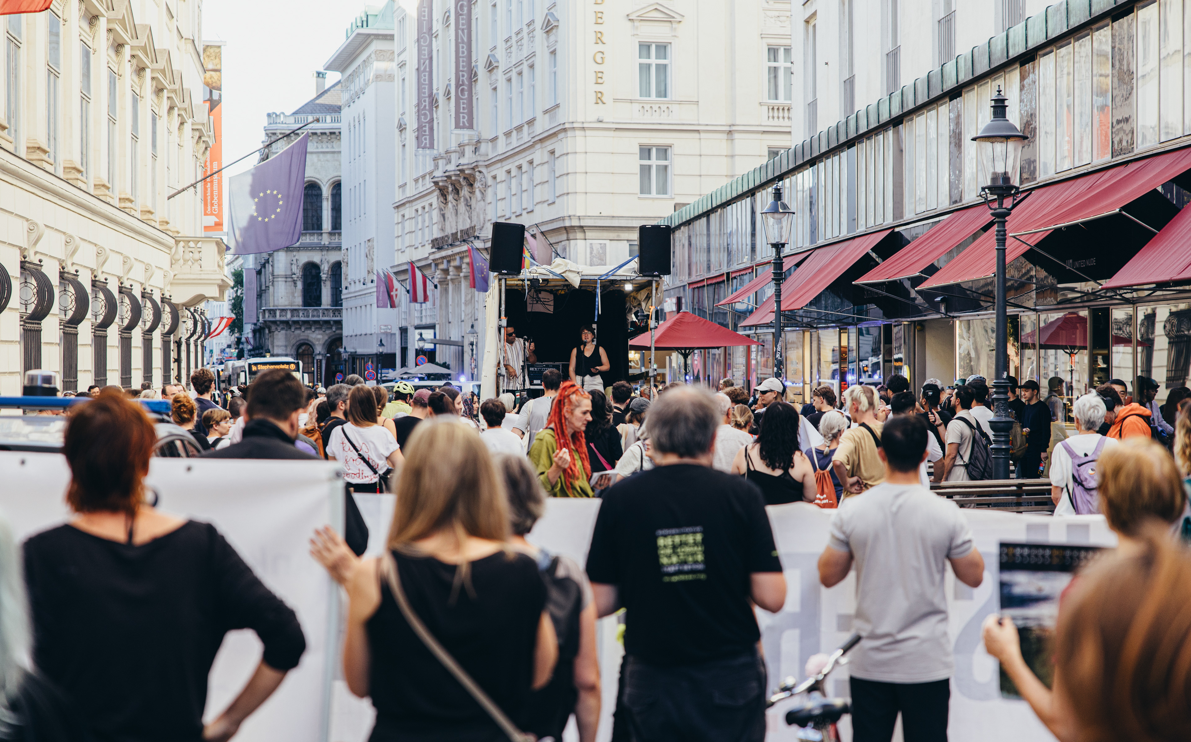 15 September 2025 - Just because I'm on holiday doesn't necessarily mean the protest photos stop. I heard this march passing a few streets away from my hotel room and immediately went out to chase it down. The march was against the recent opening of negotations between a delegation of Taliban representatives and the Austrian Interior Ministry which seeks to create a process for deporting people to Afghanistan with the assistance of the Taliban government.